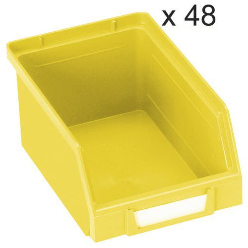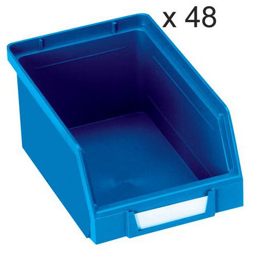 Integroitu etiketin pidin edessä (tyhjät etiketit saatavilla erikseen) Voidaan sijoittaa vapaasti, pinota, asettaa hyllylle tai kiinnittää sälepaneeleihin.