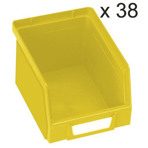 Integroitu etiketin pidin edessä (tyhjät etiketit saatavilla erikseen) Voidaan sijoittaa vapaasti, pinota, asettaa hyllylle tai kiinnittää sälepaneeleihin.
