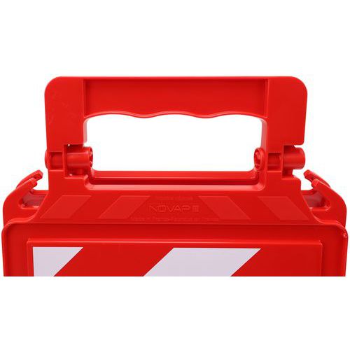 Varoitusteline raidallinen, Väri: Punainen, Korkeus: 600 mm, Leveys: 275 mm, Paksuus, kokoontaitettuna: 23 mm