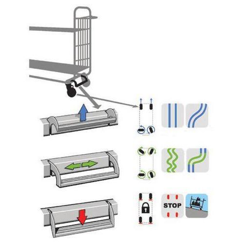 Vaunussa on kolme asentoa: Suuntalukitus: Kun etummaisen pyöräparin kääntökehä lukitaan, vaunu liikkuu suoraan eteenpäin myös raskaassa kuormassa viettämättä mihinkään suuntaan.