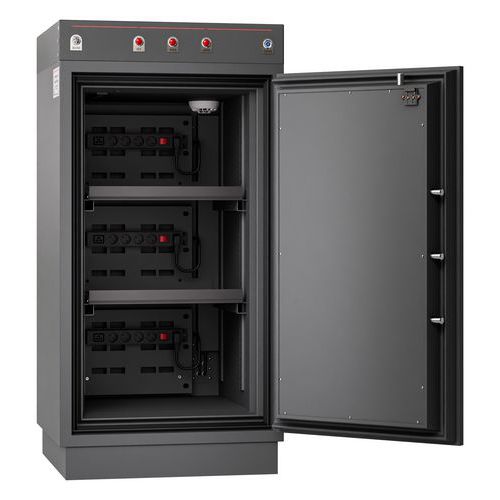 Robur Safe -akkukaappi on turvallinen ratkaisu litiumioniakkujen säilytykseen ja lataukseen vaativissa olosuhteissa.
