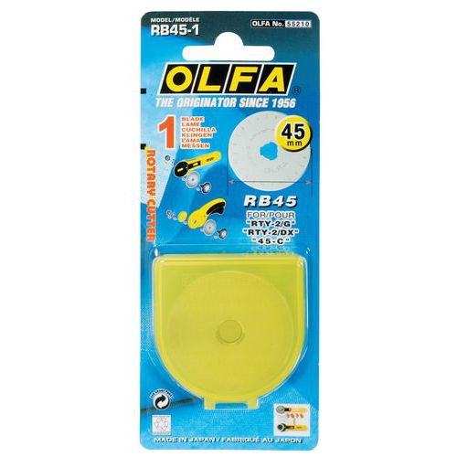 | Tavaranimike | Veitsi Olfa pyöreä, Materiaali: Teräs, Terä, leveys: 45 mm, Segmentoitu terä: ei, Lean Management: ei |