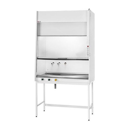 Vakiovarustus: valkoiseksi maalattu metallijalusta, laminoitu turvalasiluukku, haponkestävä ruostumaton terästyötaso, upotettu polypropeeninen labratoriotraktori, LED-valaistus, etupaneeliin sijoitettu virtakytkin, 3 maadoitettua pistorasiaa etupaneelissa, 1 kylmävesihana, työtason alle sijoitettu mediapaneeli, sähköliitäntä.