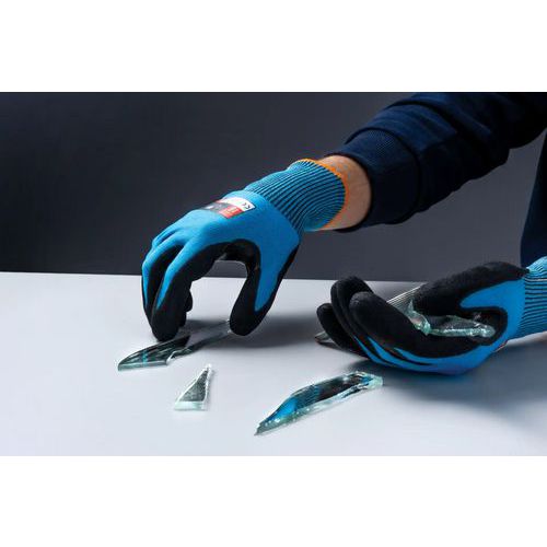 Hiekkamainen nitriilipinnoite antaa erinomaisen otteen kuivissa, märissä ja öljyisissä ympäristöissä. Mikropooreinen nitrili syrjäyttää nesteet pinnalta ja luo imuvaikutuksen, joka parantaa otetta märistä ja öljyisistä esineistä.