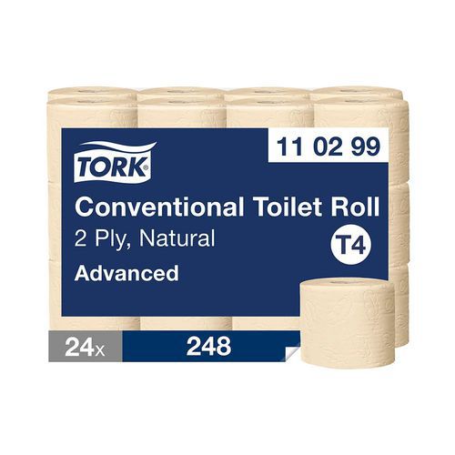 | Tavaranimike | WC-paperi T4 Advanced, 2-kerroksinen, Kerrokset: 2, Väri: Vaaleanruskea, Paino: 2.7 kg, Lkm, rullia: 24 |