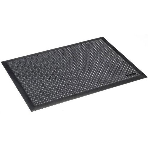 Yksittäinen kuminen antistaattinen ja kuormitusta keventävä matto, joka on suunniteltu erityisesti vähentämään työntekijöiden sähköisyyttä ja suojaamaan heitä epämiellyttäviltä sähköiskuilta ja suojaamaan samalla laitteita.