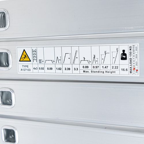 | Tavaranimike | Yleiskäyttöiset alumiinitikkaat, Materiaali: Alumiini, Korkeus, avattuna: 3.3 m, Korkeus avattuna: 4.20 m |